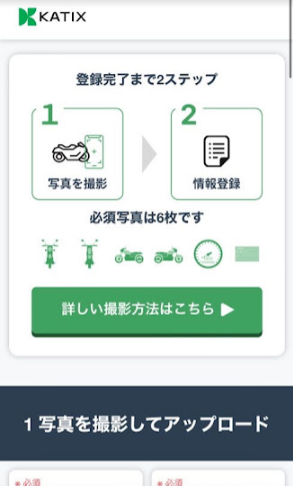 ①カチエックスの公式サイトよりバイクと個人情報を入力