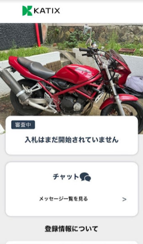 後ほどご紹介させて頂きますがこのカチエックスさんの売却システムはすごくシンプルで分かりやすくバイク引き取りに来られるまでのやり取りはすべてネットで完結しており対面で対応したのでオークションで売却が決まった後に引き取りの連絡のやりとりと当日のやりとりのみだけでした。
