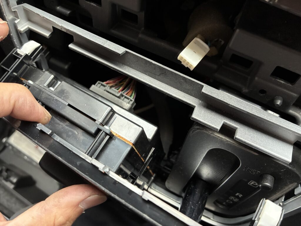 このパネルの裏にもエアコン用の大きめな配線コネクターが接続されていますのでここも気を付けて配線コネクターを取り外します。