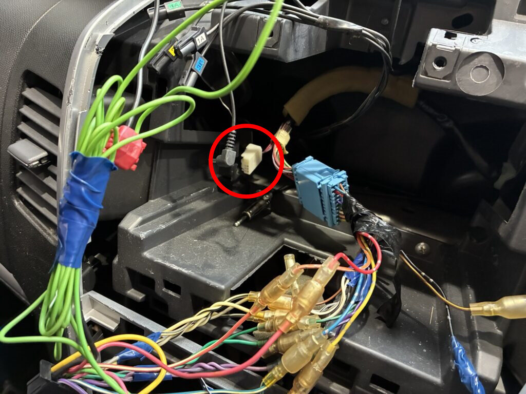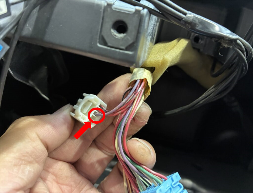 カーナビ側の車速センサーの線の先に配線をかませる部品を取り付けます。